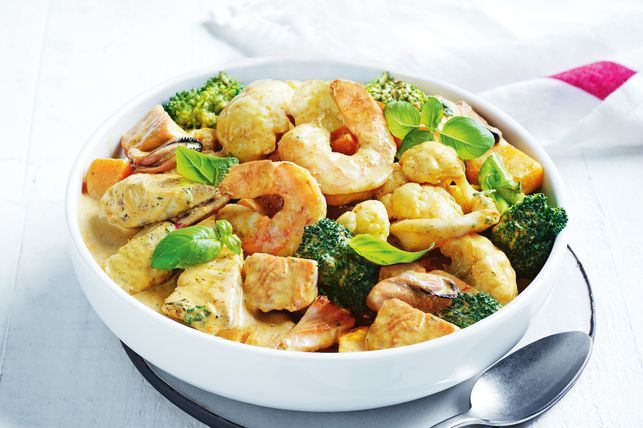 Remove from heat and stir in the basil. Divide the seafood mixture evenly among serving bowls. Sprinkle with extra basil leaves to serve.